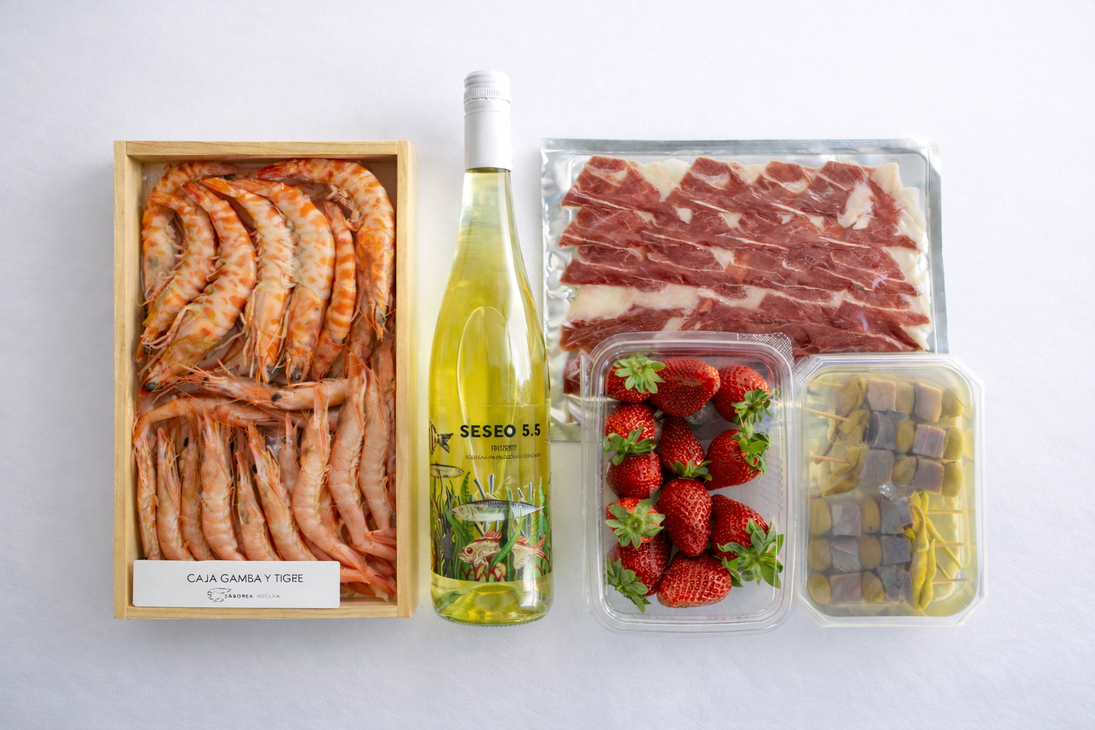 - Caja con 250 gr Gamba Blanca y 300 gr de Langostino Tigre